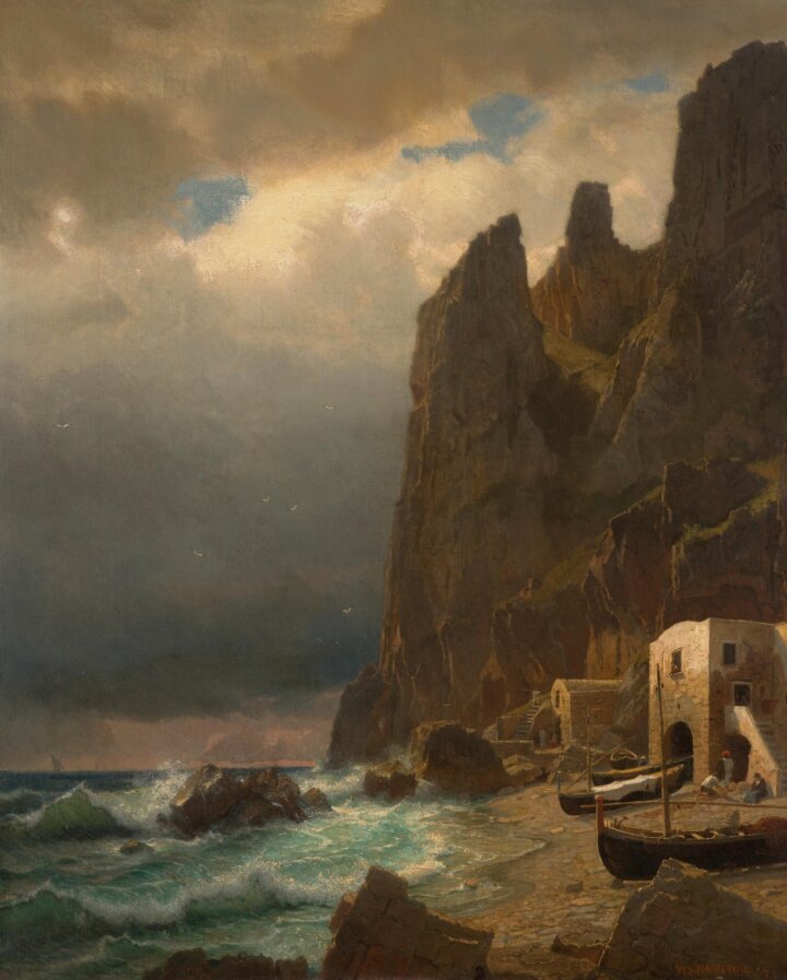 Pintor estadounidense nacido en 1835 en Filadelfia y fallecido en 1900 en Roma. Fue una figura destacada del siglo XIX, vinculado a la Escuela del río Hudson y al Luminismo norteamericano, movimientos que exaltaban la grandeza espiritual y la precisión atmosférica del paisaje. Formado en Harvard y en Europa, Haseltine desarrolló un estilo meticuloso, caracterizado por su observación casi científica de la naturaleza y la claridad cristalina de la luz. Vivió parte de su vida en Italia, donde pintó vistas costeras del Mediterráneo, Capri y Amalfi, combinando la herencia romántica estadounidense con la sensibilidad luminosa del sur europeo. Sus obras se distinguen por la serenidad, el equilibrio compositivo y el detallismo geológico de las formaciones rocosas.