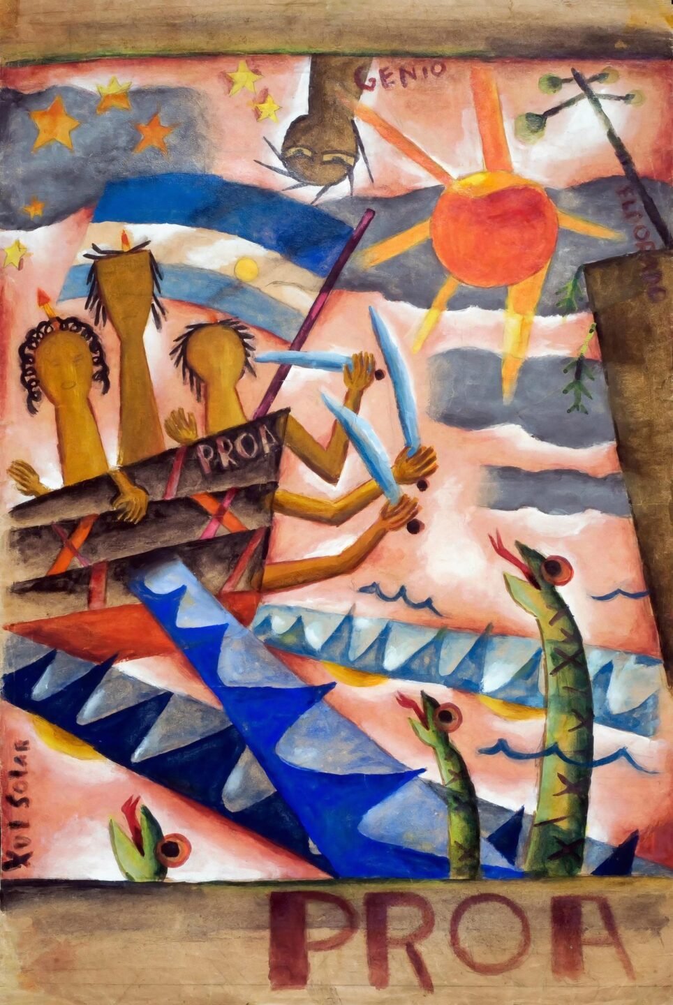 Además de su obra plástica, Xul Solar fue un inventor de lenguas (como el neocriollo), creador de sistemas de escritura y diseñador de juegos, lo que lo posiciona como una figura multifacética en la vanguardia cultural de América Latina. Su interés por la astrología, la cábala, las religiones orientales y las tradiciones precolombinas se refleja en su arte, que invita al espectador a adentrarse en un viaje introspectivo y trascendental. Colaborador cercano de figuras como Jorge Luis Borges, Xul Solar dejó un legado que combina la visión utópica de un mundo unificado con una sensibilidad profundamente enraizada en las tradiciones y la espiritualidad latinoamericana.