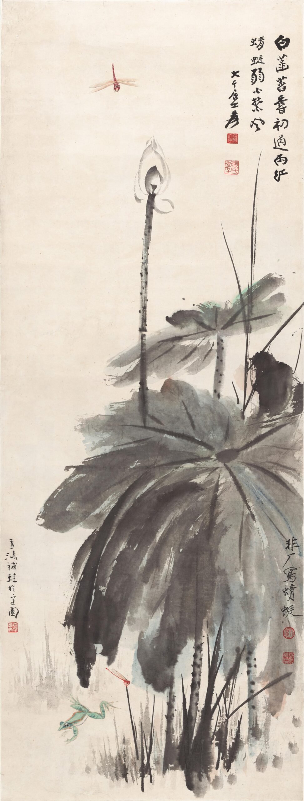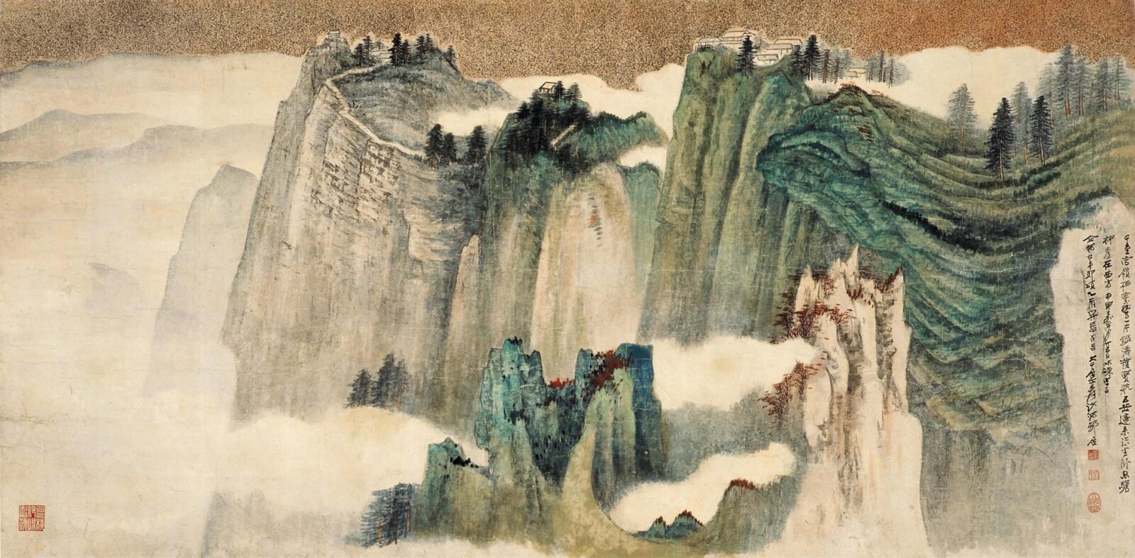 Zhang Daqian fue uno de los pintores chinos más influyentes del siglo XX, considerado tanto un maestro de la tradición como un innovador moderno. Nació en Sichuan y se formó inicialmente copiando meticulosamente a los grandes maestros de las dinastías Ming y Qing, lo que le permitió dominar la técnica clásica de la tinta y el pincel. Sin embargo, a lo largo de su vida desarrolló un estilo propio que conjugaba la herencia de la pintura china con aportes modernos, especialmente tras su contacto con las vanguardias occidentales durante su exilio en Japón, Europa y América Latina. Fue conocido por sus vastos paisajes expresivos, sus flores y lotos, así como por sus audaces técnicas de “salpicado de tinta y color” (pocai), que le dieron un sello distintivo dentro de la pintura contemporánea china.